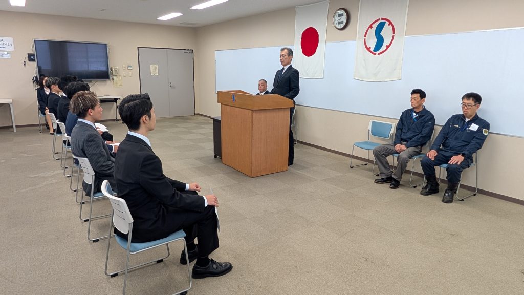 当日は、代表取締役、並びに役員による歓迎の挨拶と激励の言葉が贈られ、新入社員の皆さんは、緊張した面持ちながらも真剣な表情で式に臨み、社会人としての第一歩を踏み出しました。今後は研修期間を経て、各部署へ配属される予定です。